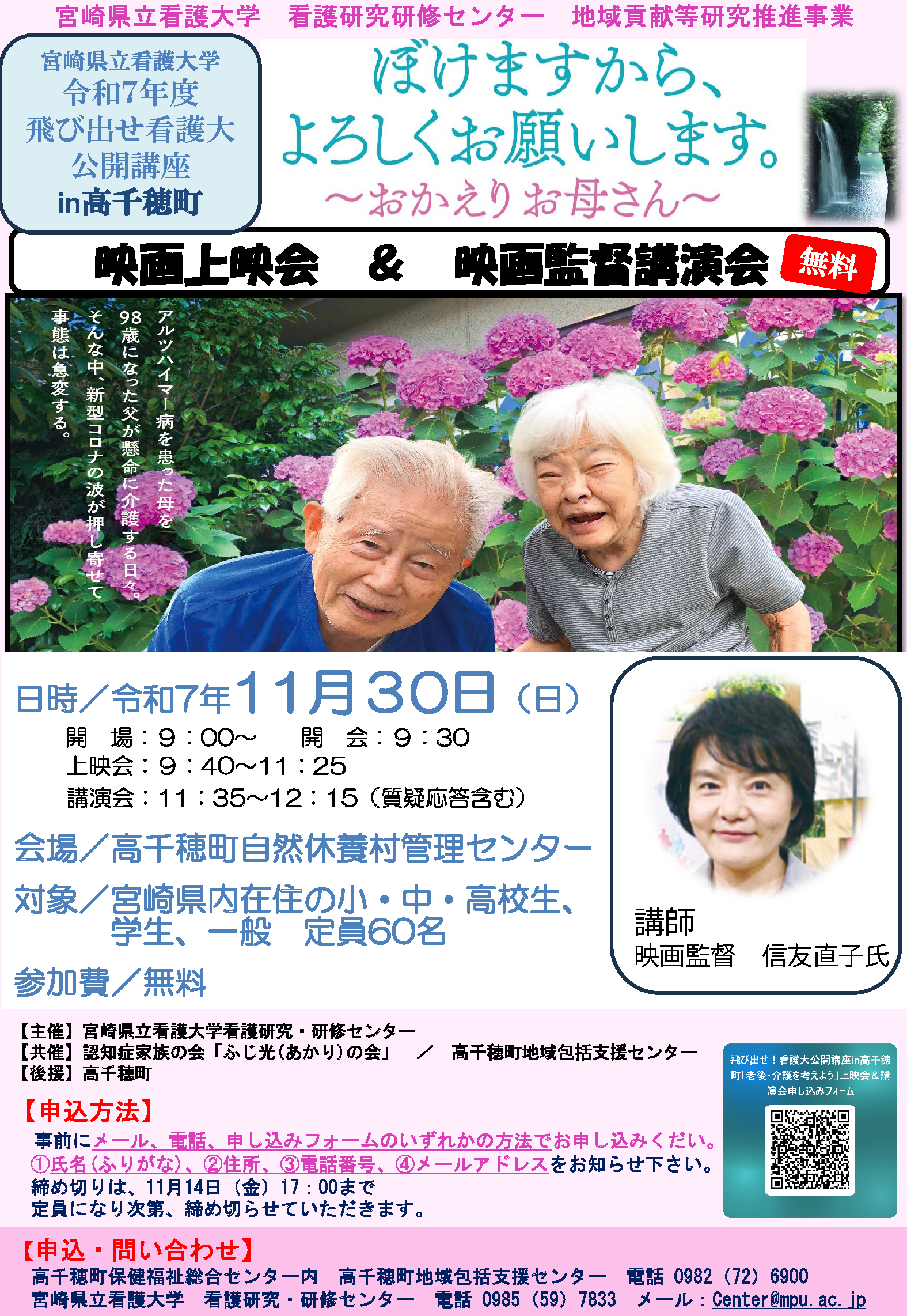 【受講者募集】飛び出せ!看護大公開講座in高千穂町「老後・介護を考えよう」~映画上映会&映画監督講演会