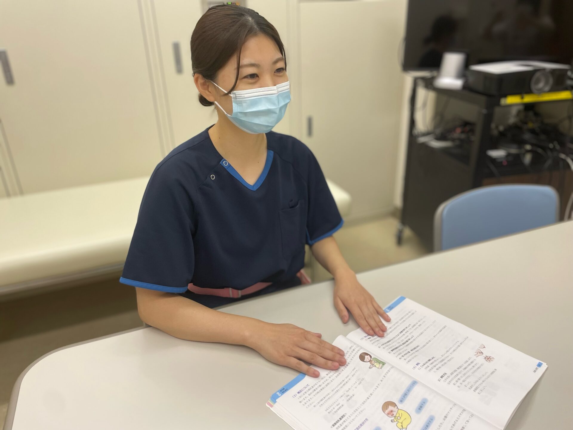 現在、成人保健に携わり、主に特定健康診査受診者へ保健指導を行っています。