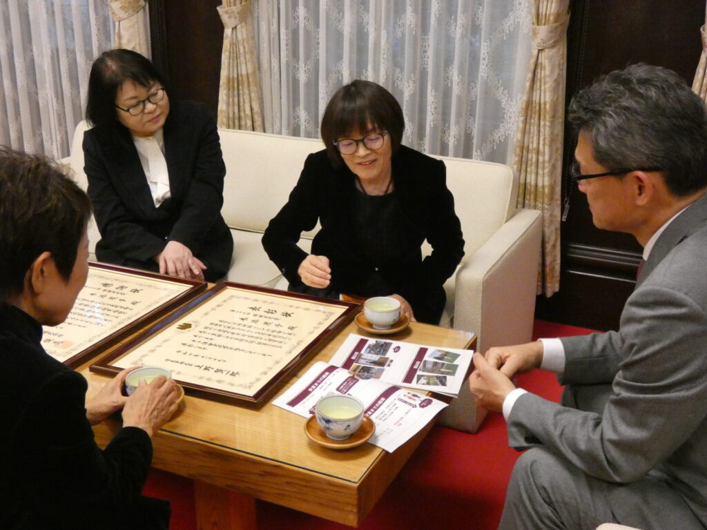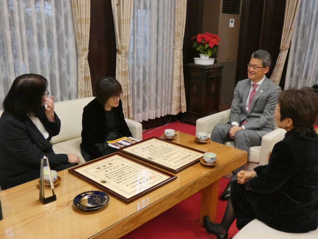 12月17日水曜日、河野俊嗣宮崎県知事を長鶴美佐子学長、川原瑞代看護研究・研修センター長と共に表敬訪問し、受賞を報告しました。