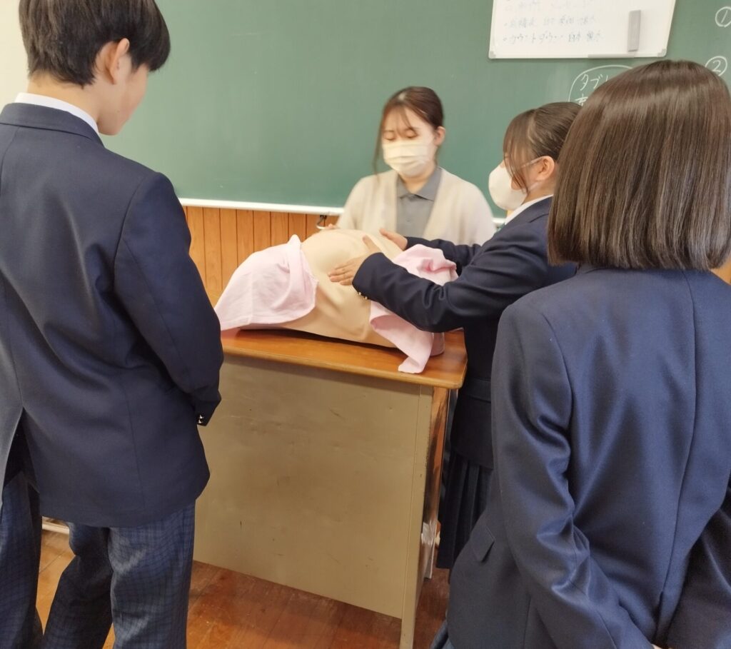 受講した中学生からの感想は、「妊婦体験は普段学ぶことができなかったので良い経験になった」「性に対する考え方を改めることができた。以前は何となくいやらしいことだと思っていたけど、今は生きていく時に大事で大切なことだという考えに変わった」などの声が聞かれ、助産師学生にとって大変有意義な機会となりました。