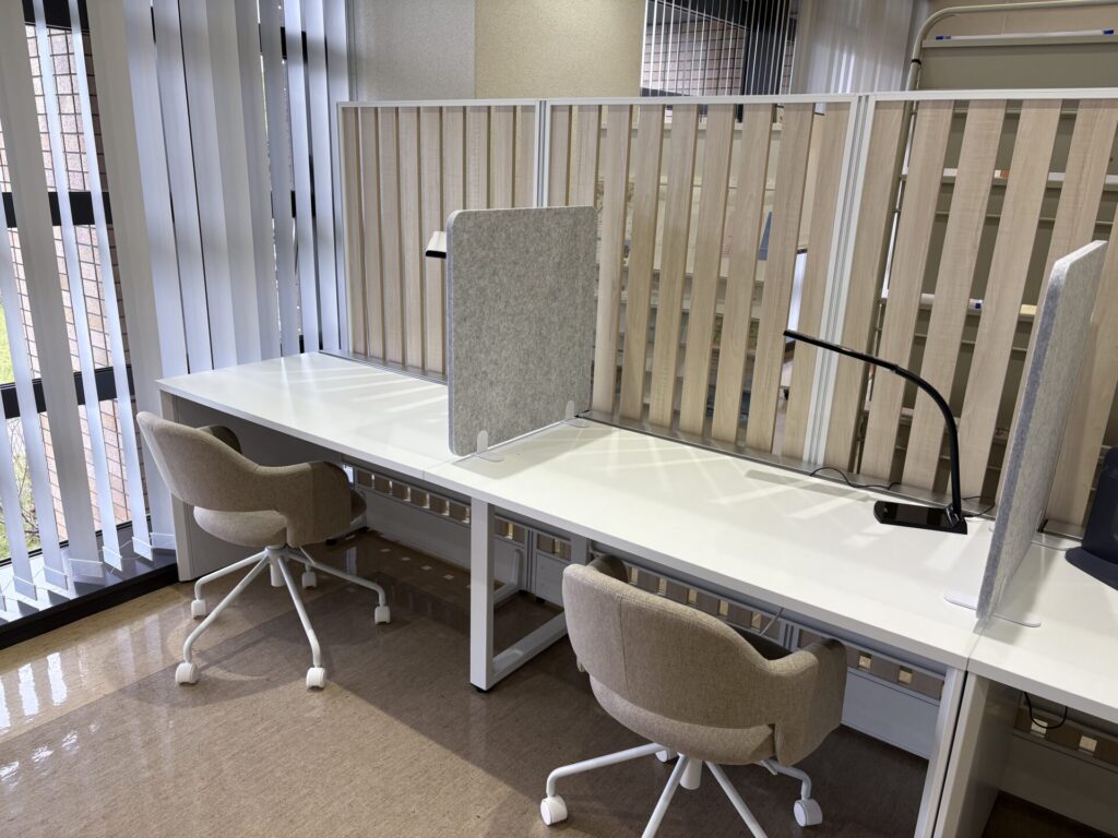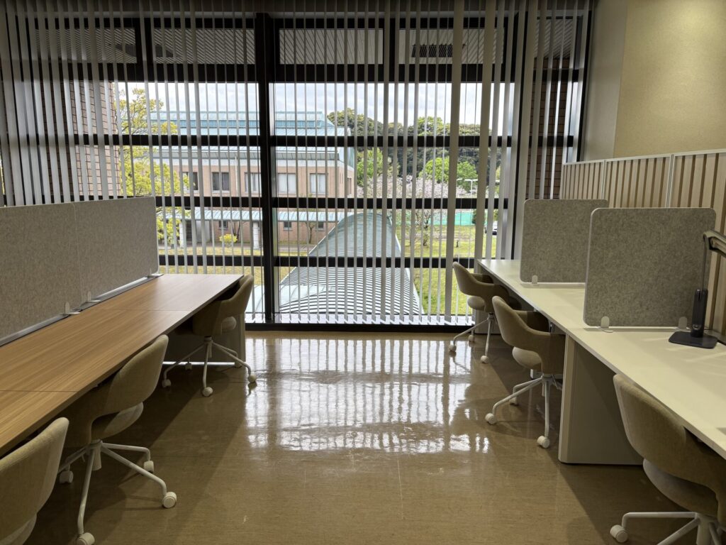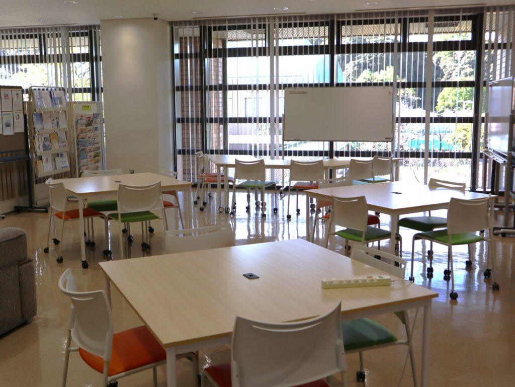 本学では学生の学習や交流を促進するため、ラーニングコモンズを設置しています。この度、学生からの意見をもとにラーニングコモンズのリニューアルを行い、さらに使いやすい学習環境を整備しました。本学では、学生の学修環境向上のための取組をこれからも進めていきます。